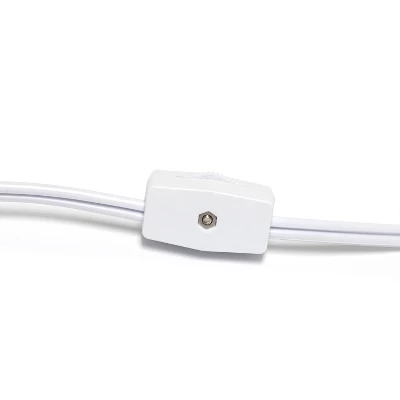 - Features a 5′ white plug in cord with an in-line gear (rotary) switch
