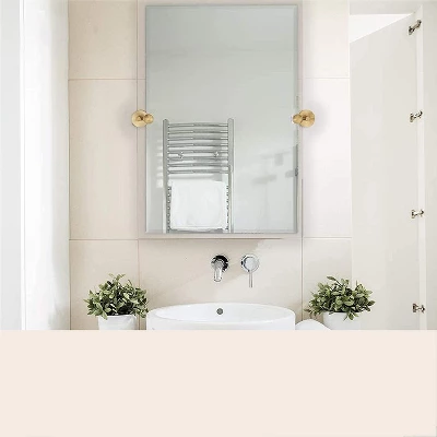 Hamilton Hills presents a sophisticated 20″x30″ beveled rectangle mirror with adjustable wall brackets and brushed gold glass clamps. Our authentic silver backed glass comes with safety polished edges and a security vinyl backing for added stability. Our family owned business has been manufacturing mirrors for over 3 generations, and our mirrors are made to strict trade-secret standards with a rigorous 8 point inspection. Enjoy the pivoting feature and multiple viewing angles with our premium quality mirrors.