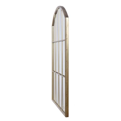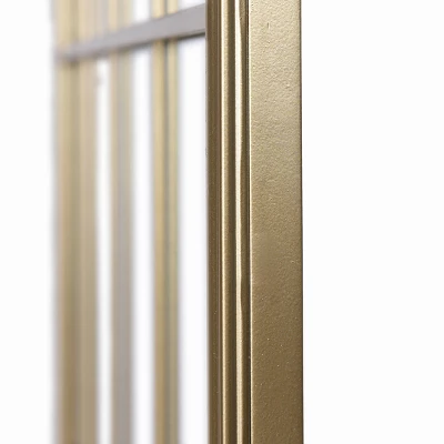 Add a subtle touch to any bare wall in your home with the StyleCraft Luka Farmhouse Metal Window Pane Wall Mirror. This decorative wall mirror sports a bright gold finish and features a grid overlay. This mirror even has keyhole hooks for hanging on the wall. This piece exemplifies superior product design and great styling. It will pair well with transitional styling. If you put it in the bedroom or family room, this decor stands out. Suitable for residential use in a dry location. Due to the way this piece is made, no two are exactly alike and color finishes may vary from piece to piece. Due to lighting and monitor differences, actual colors and finishes may vary slightly from what appears online