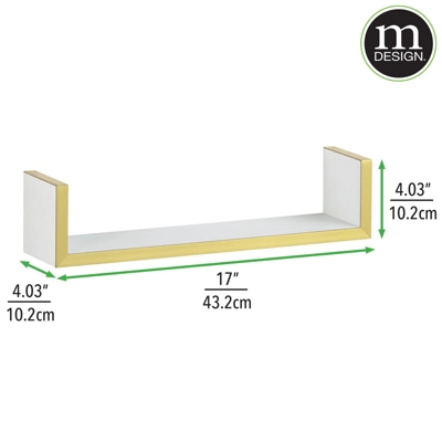 Decorate the walls of any room in your home with this Floating U-Shelf by mDesign. This versatile shelf mounts to any wall. The simplistic design allows you to maximize your storage and decorate your space. Use this shelf in a home office, bathroom, kitchen, bedroom, kid’s playroom, craft room, laundry room, and more. Hold photographs, personal mementos, plants, flowers, candles, cleaning supplies, phone chargers, tablets, detergent, arts and crafts, toys, books, magazines, remote controls, and any other essentials. Easily display this shelf on a wall on its own or use multiple together to create a longer shelving unit and a custom storage solution that works best in your home. mDesign – Solutions for Home. Solutions for Life.