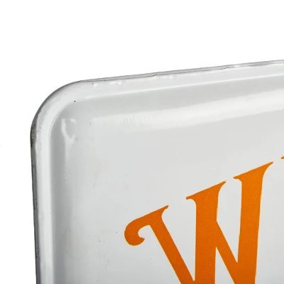Get the party started with this wall sign that announces the source for Halloween beverages. Printed in bright orange ornate letters is “Witches Brew” followed by “Drink Company” just beneath with a centered witches’ hat as the finishing touch. All metal construction will provide years of seasonal display. Includes back side mounting loops on both ends of sign. This fun Halloween trimming can be hung on wall or door in inside or outdoor locations.