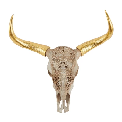 Polystone Cow Carved Skull Wall Decor – Olivia & May