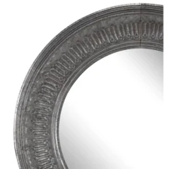 With an antique gray finish, intricate pattern, and impressive size, the round Matis Mirror is a dramatic piece that complements a variety of styles. Add to any home or office for a bold, classic look. The Matis Mirror fits beautifully in a grand foyer, lofty great room, or traditional master bedroom. As with all mirrors, the round Matis Mirror makes any space look brighter and feel larger.